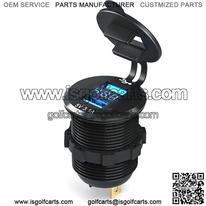 9-48V Golf Cart Voltage Meter with Dual USB 3.1 Charger for Yamaha Club Car EZGO- Golf cart voltage meter with dual USB 3.1 Charger works on most golf carts like Club Car,EZGO and for YAMAHA,other Cars, Motorcycle, Bus, RV, Boat, etc. – Golf Widely works on 9V/12V/24V/36V/48V power input,Max Output: 36W(18W each); Output Current: 5V, 3.1A; Voltage Display Range:8.88~99.9V; NO NEED voltage reducer to change the voltage;- Aluminum alloy body ,scratch resistance keeps it sturdy&durable; This Upgrade metal USB charger will not be overheating at high temperature, which is more safer than plastic one;- Quick Charge 3.1 Dual USB Charger Built-in Smart IC Chip will intelligently detect your devices and charging devices at optimal current; Resisting Over-load, Over-heat, Over-voltage, Over-current and Short-circuit. A waterproof and dust-proof TPU cap makes it stable and durable;- Easy to install: This USBsocket outlet fits most golf carts dash panel , very easy to be installed within 25 minute