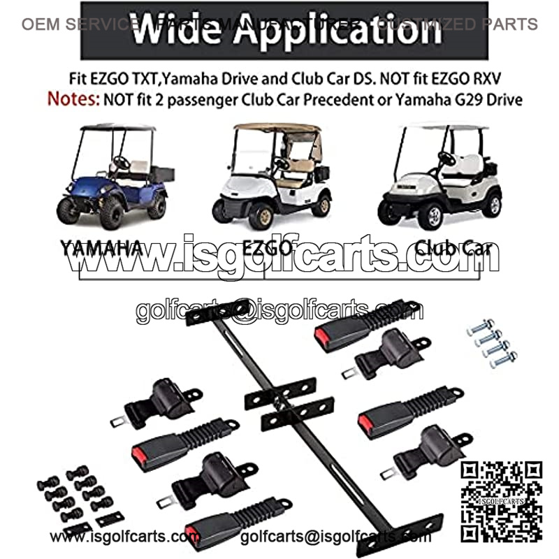 Club Cart Seat Belts Fits for 4 passengers Golf cart -TXT, Yamaha Drive and Club Car, Warm Tips: NOT FIT for 2 Passenger Club Car Precedent, Yamaha G29 Drive and RXV.