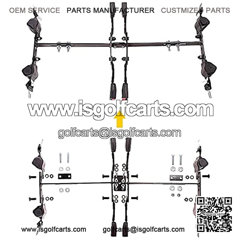 This Golf Cart Seat Belt Kit Include:1pcs gold cart bracket-35″*6.9″size , 4pcs seat Belts, 4pcs Seat Belt Length reach to 42″ and relates screw and nuts for installation, no need to buy seperately.