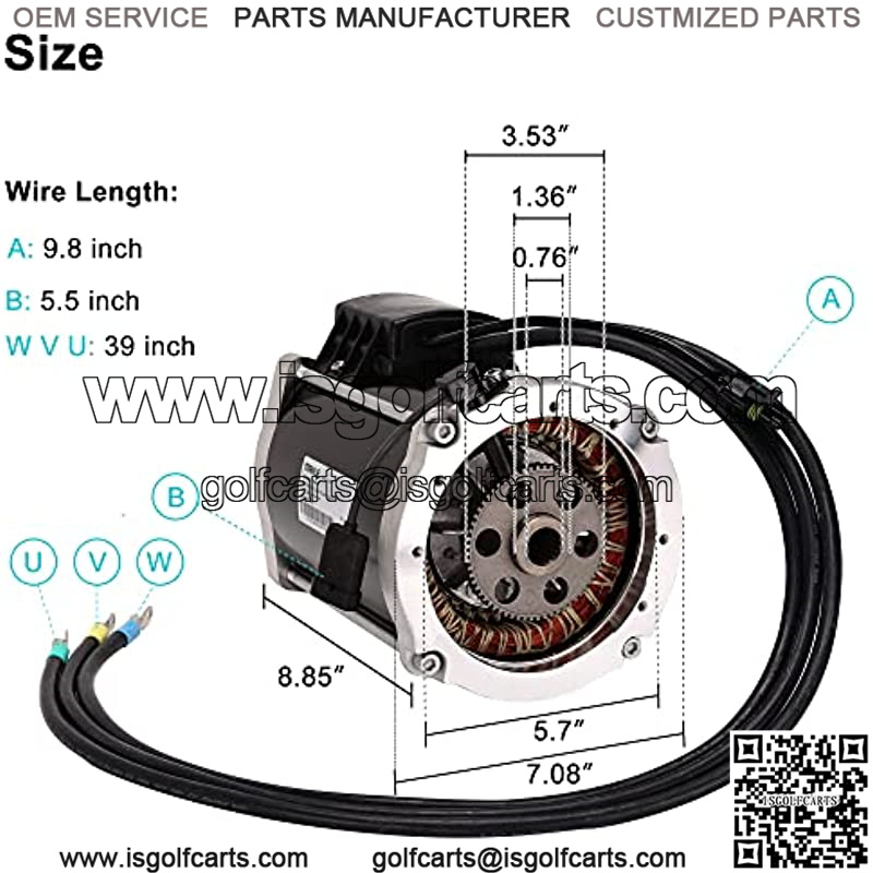 MAHLE 3 Phase AC motor, AMT7156 3.3KW DC 48V Class:H Fits EZGO RXV 2008-2015, 2FIVE 2010-2015 48V electric golf cart Fits Cushman LSV-800 2012-2015 48V utility vehicle Replaces OEM number(s): 611355, 671143, 601882 Flexloom sleeve, mounting bolts and adapter are NOT included, 1-year limited warranty