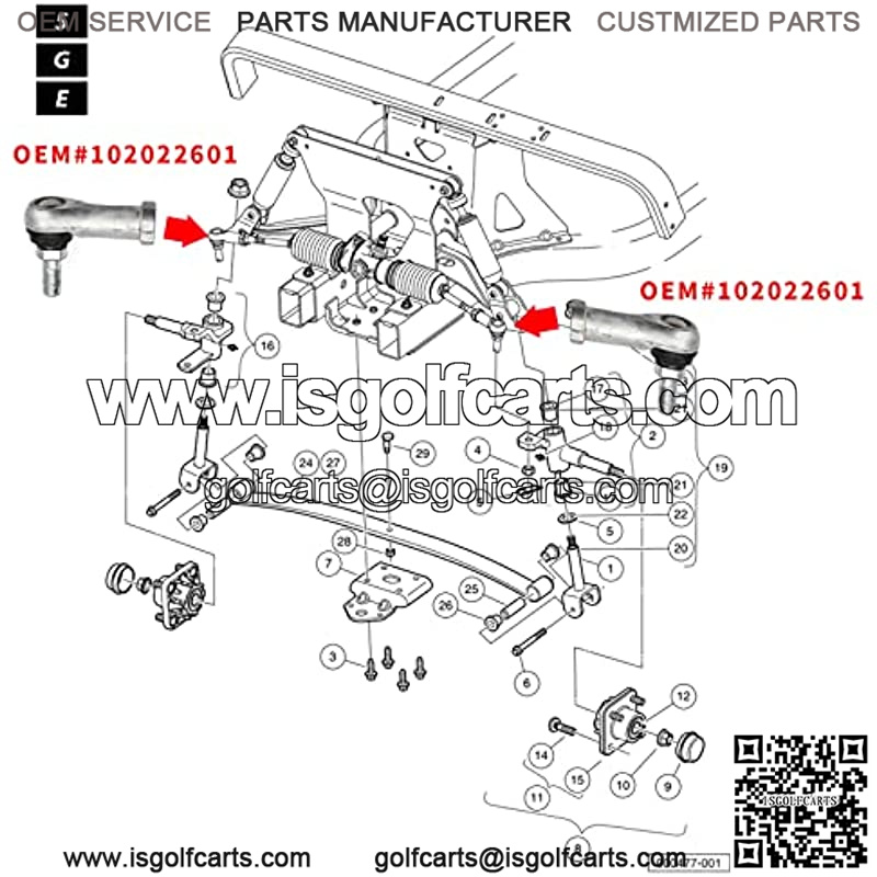 2 Steering Tie Rod End (RH thread) for Club Car Precedent G&E Golf Cart Kart 04+