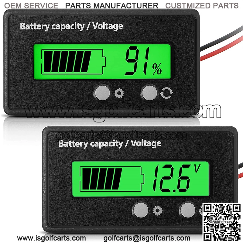 Battery Capacity Voltage Meter with Alarm and External Temperature Sensor 0 – 179??F Temperature Monitor 12V 24V 36V 48V 60V 72V Acid Battery Lithium Battery Gauge Meter for Most Cars(Green)