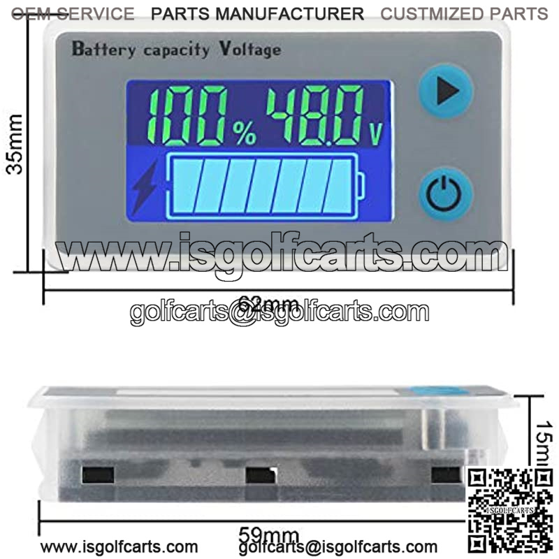APPLICABLE BATTERY — DROK battery capacity monitor is suitable for 10-100V (12v 24v 36v 48v 60v 72v 96v) lithium battery, lead-acid battery, lithium iron phosphate battery, Ni MH battery. Default 48 volt lead acid battery.