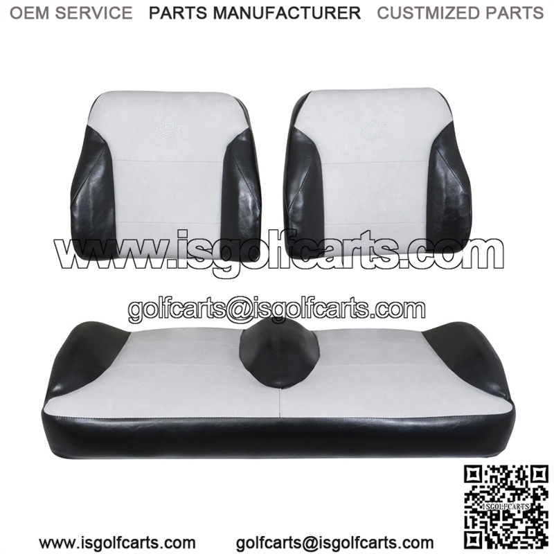 Looking to add comfort and style to your cart Upgrade your stock golf cart seat cushions to a high quality new set of Suite Seats!Specifications: Fits E-Z-GO 1994.5-2013 Gas Electric ModelsMarine grade supple black/silver vinylSuite Seats include new wood, foam and vinylOnly parts you reuse from the original seat are the hip restraints (arm rests) and the hinge tabs Please Note: The backrests are separate from each other and the base seat is one piece. However, the base seat is highly contoured so it has the comfort and appearance of a bucket seat.