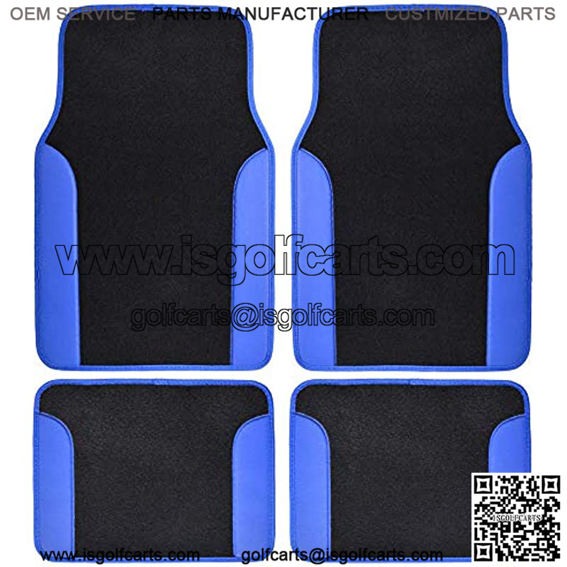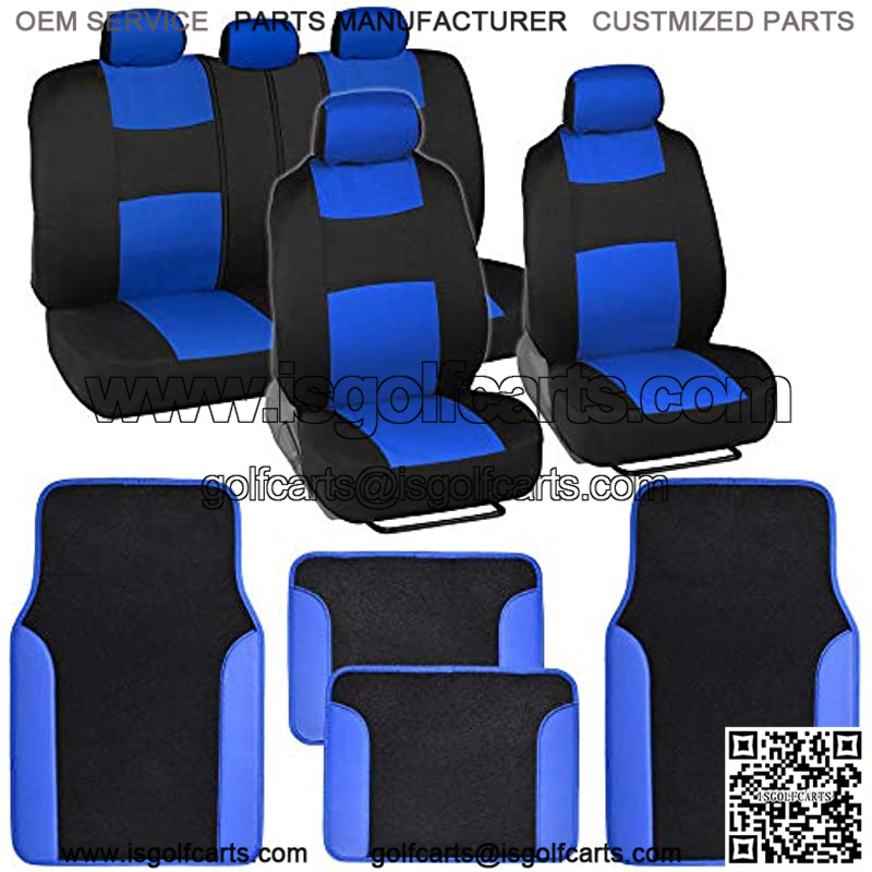 Blue Combo Fresh Design Matching All Protective Seat Covers (2 Front 1 Bench) with Heavy Protection Sleek Graphic Auto Carpet Floor Mats (4 Set)