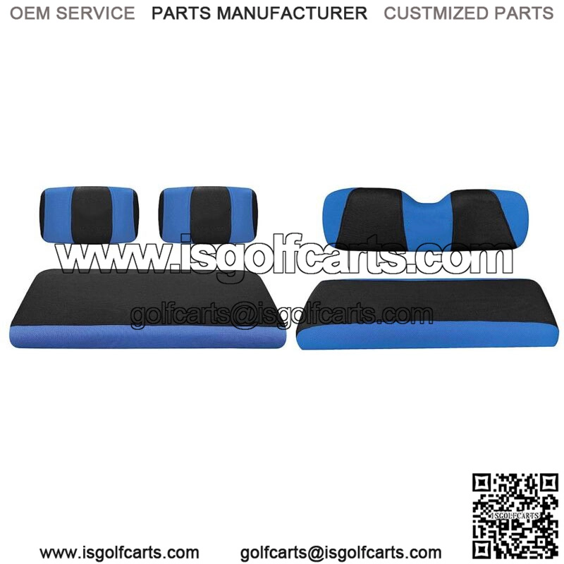 Blue Golf Cart Front Rear Seat Covers for Yamaha G2 G8 G9 G11 G14 G16 G19 G20 G22, Club Car DS Pre-2000- Front and rear golf cart seat covers fits 2+2 passenger Yamaha G2 G9 G11 G14 G16 G20 G21 G22, Club Car DS pre-2000, Tomberlin Emerge.- golf cart seat covers made of air mesh breathable fabricpolyester, durable, non-slip and anti-static. Thegolf cartseat cover protects your seat against dirt, sun, extends the life.- Designed in TWO-Tone(Blue+black), good for dressing up a new golf cart and renew the golf cart with worn out or scratched seat- Toolleadjustable straps and retractable buckle design help you install easily and remove in minutes. If you feel it is not fit, you can just simply adjust the strap.- Easy to install and clean: It will take you few minutes to install the seat cushion cover kit. Machine washable and air dry.- Package includes: 1 set Front seat cover + 1 set rear seat cover.Front Seat Cover Set:Bottom Seat Cover-Size: 42.5″(L)*21.4″(W)*3.9″(H)One Backrest Cover-Siz