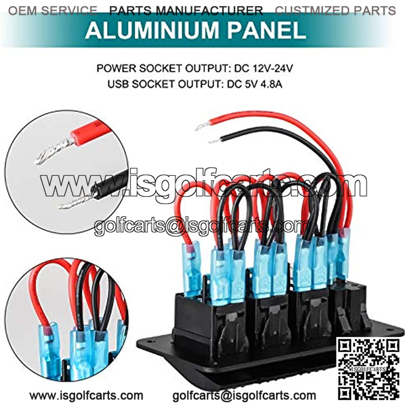 FAST CHARGER: 3 gang rocker switch aluminum panel has 12-24 DC input and power outlets, 2.4A each port (4.8A total) for faster charging.