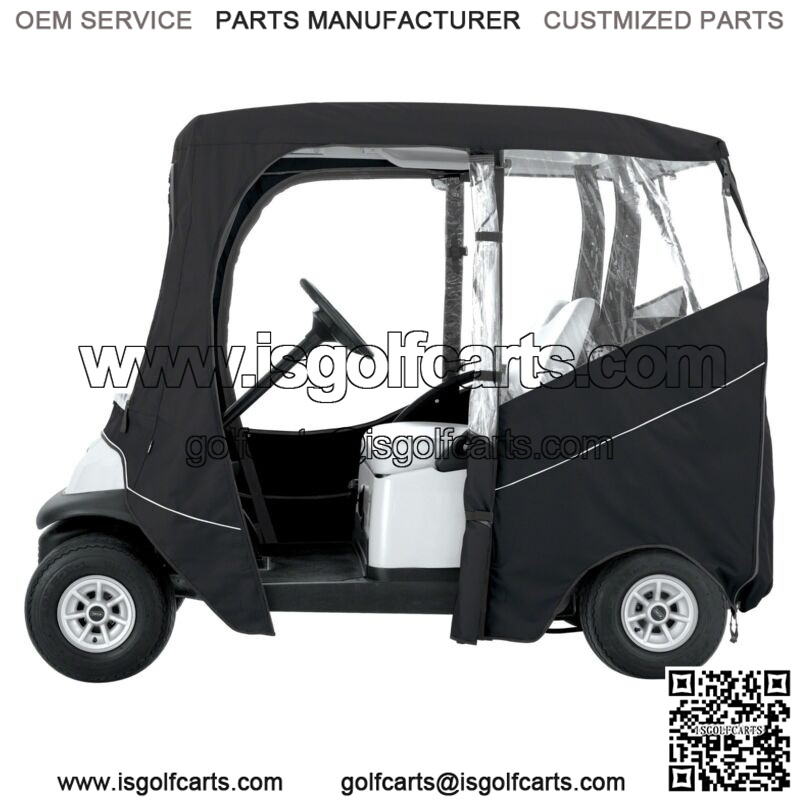 Deluxe black enclosure 2-passenger golf carts with short tops (up to 68″)