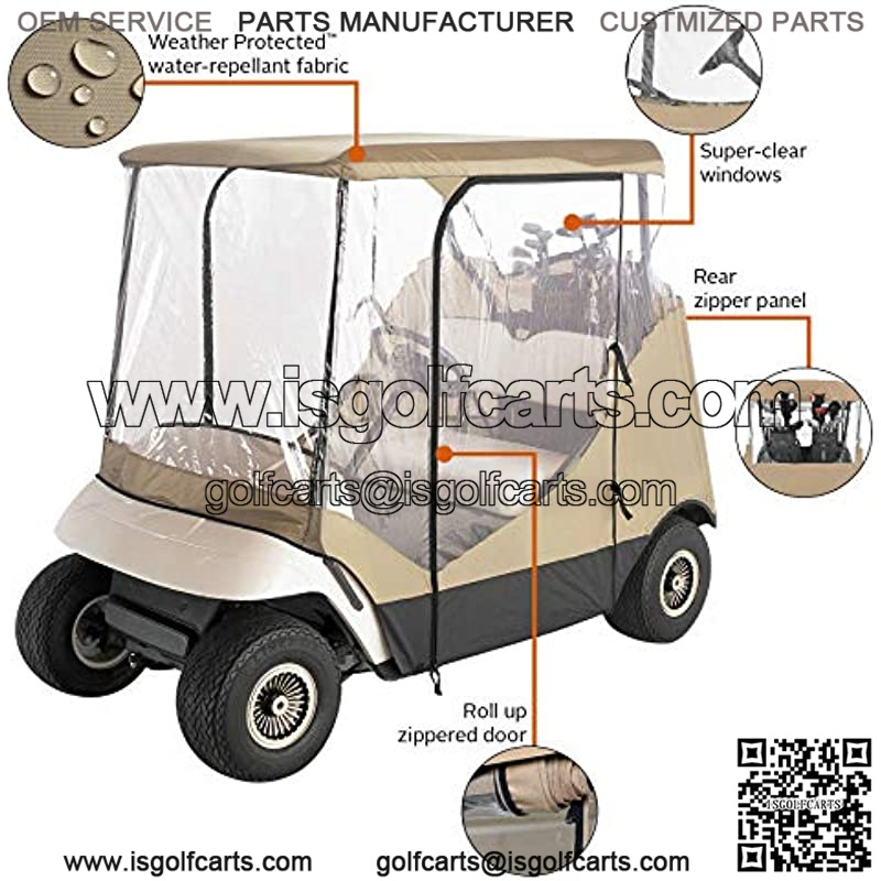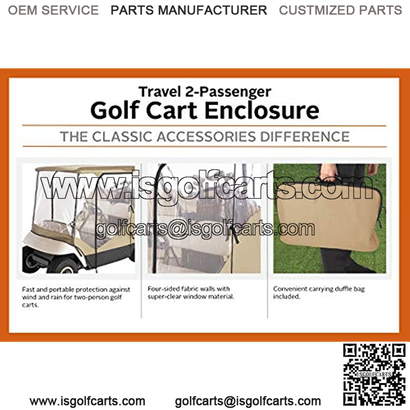 The Fairway collection by Classic Accessories is built around providing quality golf enclosures, covers and accessories – allowing you to focus on the game and not the forecast. Fast and portable protection against wind and rain for two-person golf cars.