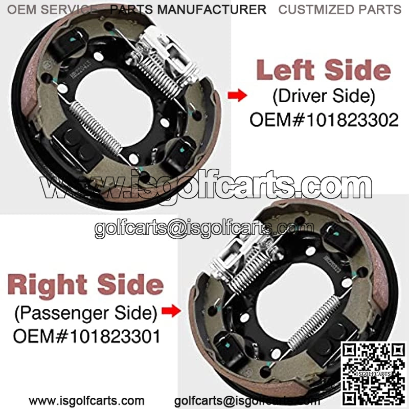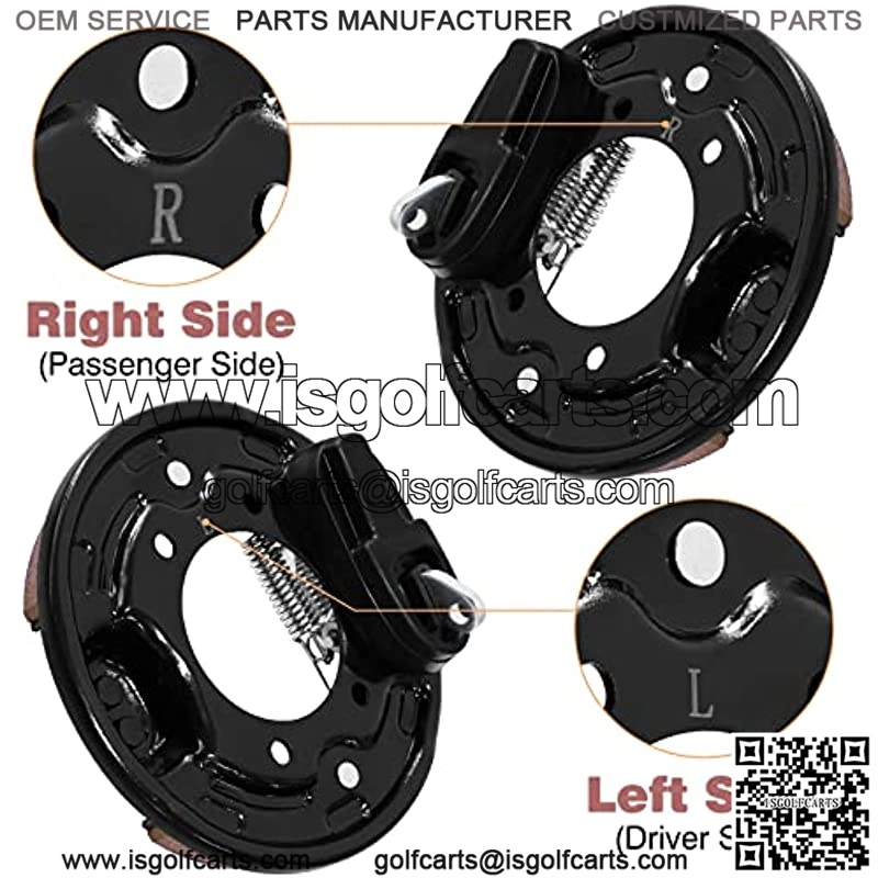 ??Fit Models??Golf cart brake assembly fit Club Car DS & Precedent 1995-Up gas and electric golf cart, Tempo 2018-up golf cart.??Replaces OEM#??Club Car driver side brake assembly, Left, OEM#1033802-01,4246,1018233-02,Club Car passenger side brake assembly, Right, OEM#1033802-02,4202,1018233-01.??Good Quality?? With the quality golf cart Club Car brake assembly, you don’t need to worry about the brake issues or fracture problem.??Easy installation??1 pair Club Car DS rear brake assembly for one golf cart, directly replace without adjusting the brake spring.??Package Included??Includes backing plate, adjustable mechanism, brake shoes with retainers, springs, activating lever and dust cover. Does not include brake drum.Product Description Club Car DS Precedent Rear Brake assembly For One Golf Cart Feature??Fits Club Car DS & Precedent 1995-Up gas and electric golf cart.Fits 2018-up Golf Cart golf carts.Left, Club Car driver side brake pads assembly, OEM#1033802-01,4246,1018233-02.Right, Club Car p