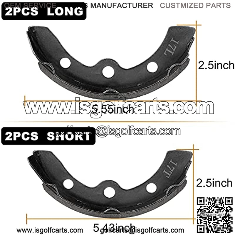 Fit Models: Club Car brakes fit for Club Car Precedent DS G&E1995-up golf cart.Replaces OEM Part: Club Car DS Precedent brakes OEM# 1018232-01. Complete for one golf cart.Good Quality: With the quality Club Car brake set, you don’t need to worry about the brake issues or fracture problem.Easy Installation: Our golf cart replacement brake shoes can be installed easily. Please carefully check the production year, model and serial number of your golf cart before purchasing.Package Contents: Golf Cart Brake shoes kit includes 4 PCS Club Car brake shoes which are 2 short -17T and 2 long-17L.We are always committed to providing high quality products for global customers. We hope that customers could have a comfortable shopping experience. If there is any questions and problems, we will offer professional service. The Basic Information of Club Car Brake Shoes Product Name Club Car Brake ShoesFit ModelsClub Car Precedent DS G&E1995-up golf cart.Replace OEM PartClub Car DS Precedent brake