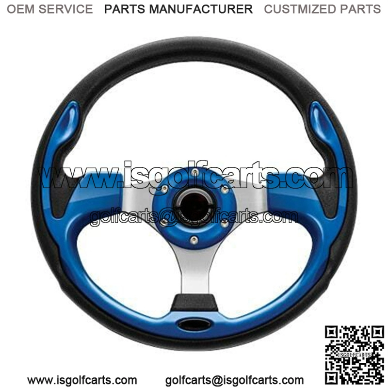 Golf Cart Steering Wheel Blue 3 Spokes Fits Hub Adapter W/ 6 Hole Pattern