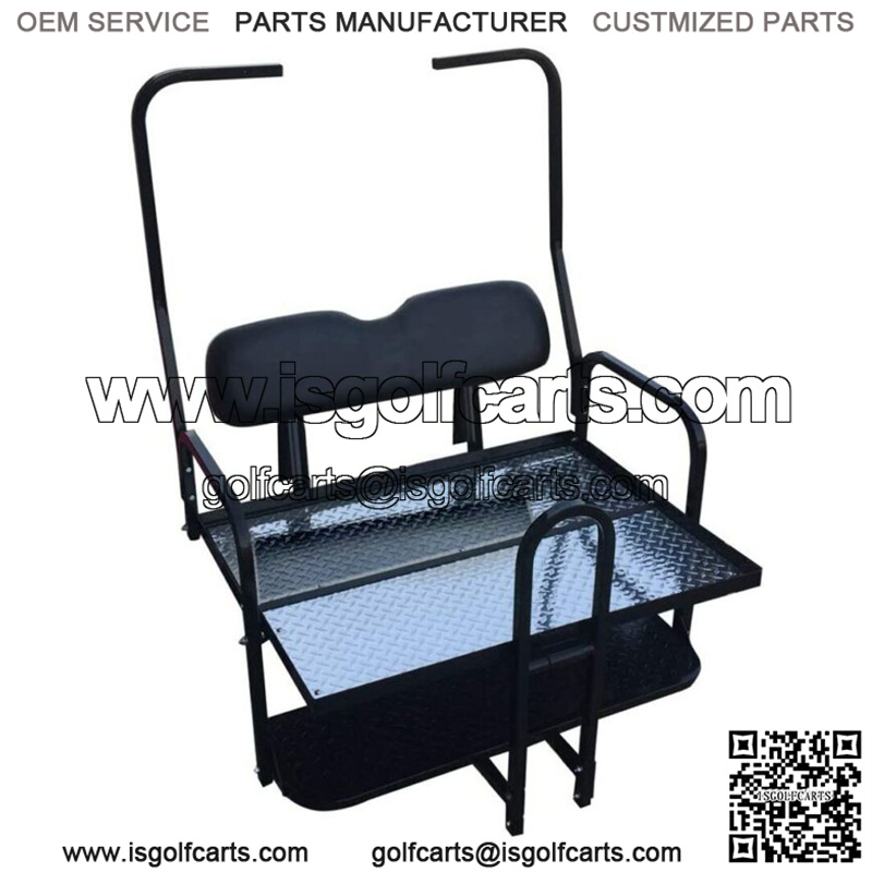 Club Car DS Golf Cart Flip Folding Rear Back Seat Kit with Diamond Plate – Black