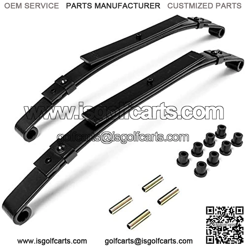 Fits all Club Car DS Golf Cart Models 1981-Up. 3 Leaf Design that provides the additional load carrying capacity you need. Full kit that includes 2 springs, 8 poly bushings, and 4 metal spacer tubes. Durable design and high quality spring.