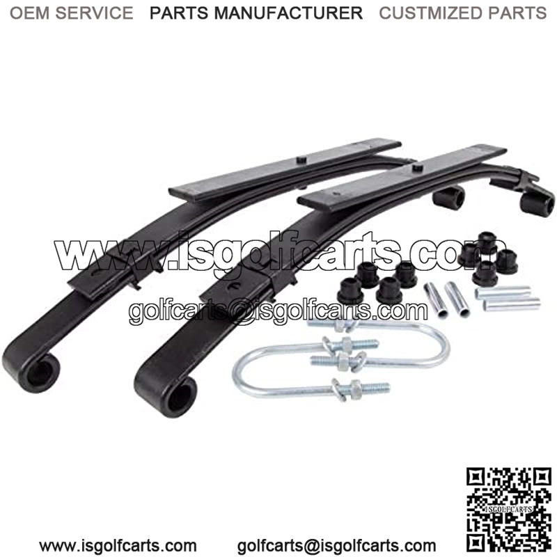 [LEAF SPRING KIT] – Our complete kit includes everything you need to improve the ride of your golf cart with the added weight of passengers or cargo. The kit includes (2) heavy duty leaf springs, (8) rubber bushings and (4) metal spacers and (2) U-Bolts.