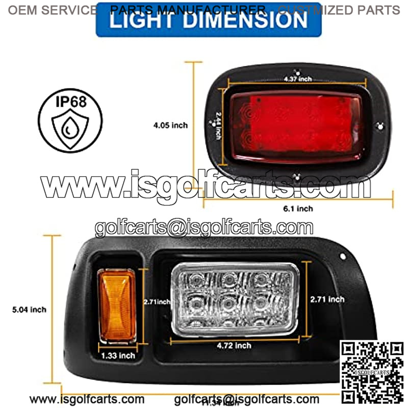 ??All LED Lights??IP68 waterproof Club Car light kit led street legal comes with All LED for the headlights and taillights. LED Head light and LED Taillights for energy-saving, durability, brightness, over 30, 000 hours lifespan.