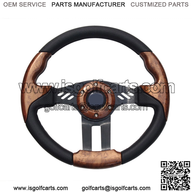Premium Quality Golf Cart Steering Wheel with Hub Adapter – Wood Grain Club Car DS Gas and Electric Golf CartFeatures:Customize and add style to your cart.Adding a custom Steering Wheel gives you better control of your cartClassic Wood Grain StyleIt has a polyurethane grip with extra urethane coating for better heat resistance and longer life.Stylish brushed aluminum centerHorn button is for aesthetic purpose only.13 Inch Diameter