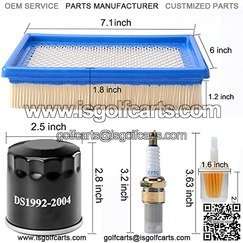 Club Car DS tune up kit with air oil fuel filter spark plug for 1992-2004 gas golf cart models.