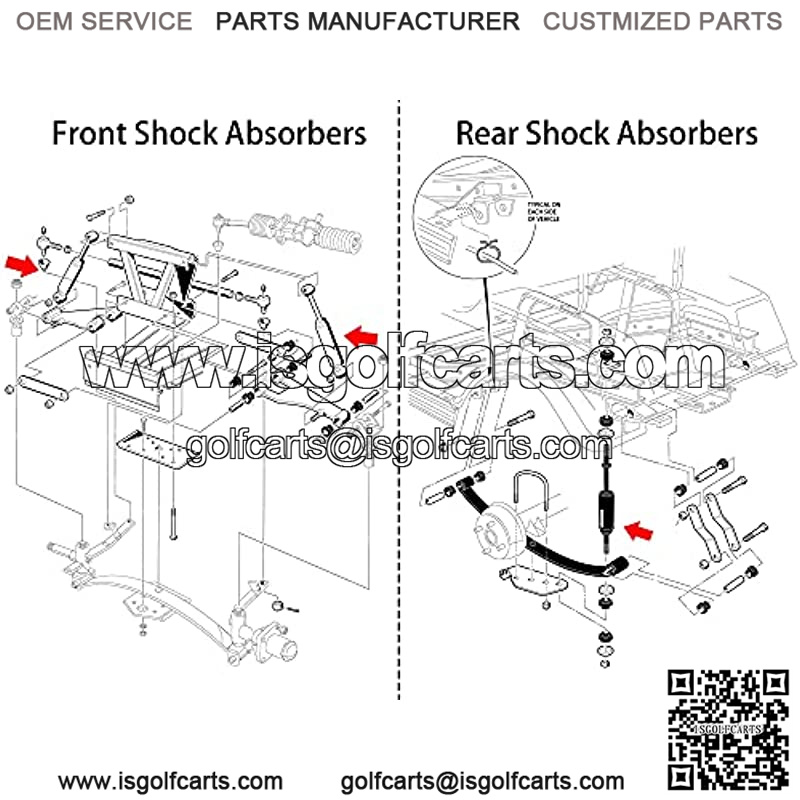 ?Fit For??Front shock absorber fits Club Car DS (8″ x 10-38″) G&E 1981-2007, Precedent gas 2000-up. Rear shock absorber fits Club Car DS electric 1981-up, Gas 1997-up , Precedent G&E 2004-up.