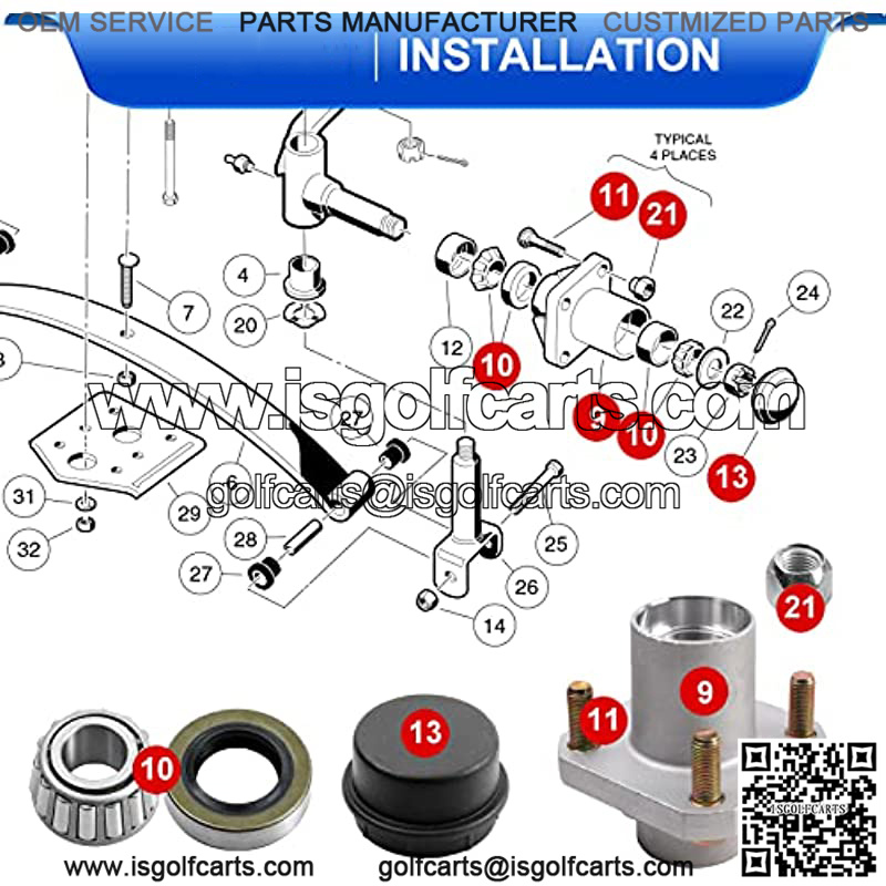 Club Car front wheel hub assemblies for DS 1974-2002 gas and electric golf cart models. NOTICE: Will NOT fit 2002.5-newer DS models or Club Car Precedent / Tempo / Onward models.