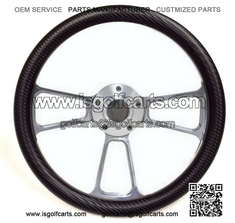 Club Car Golf Cart 14″ Billet & Black Carbon Fiber Steering Wheel + Adapter