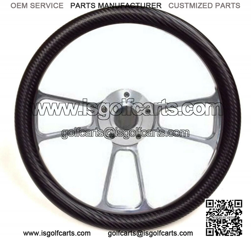 Club Car Golf Cart 14″ Billet & Black Carbon Fiber Steering Wheel + Adapter