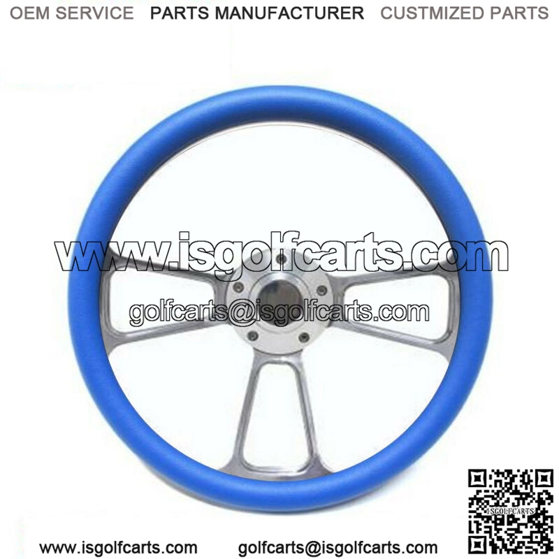 Club Car Golf Cart 14″ Billet Sky Blue Steering Wheel Includes Horn & Adapter