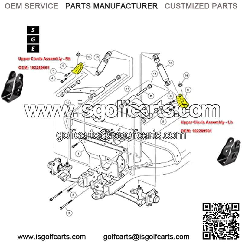 Club Car Precedent 2004+ Upper Clevis Assembly Passenger Side Driver Side for 2018-up Tempo G&E Golf Carts OEM 1022897-01, 1022896-01