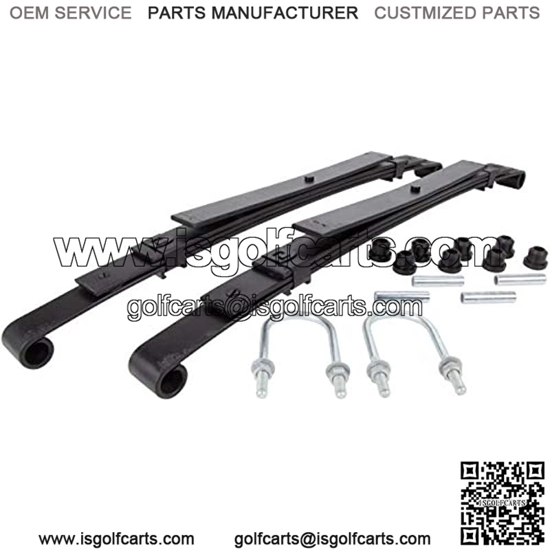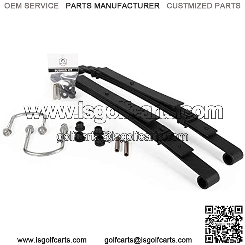 [LEAF SPRING KIT] – Our complete kit includes everything you need to improve the ride of your golf cart with the added weight of passengers or cargo. The kit includes (2) heavy duty leaf springs, (8) rubber bushings and (4) metal spacers.