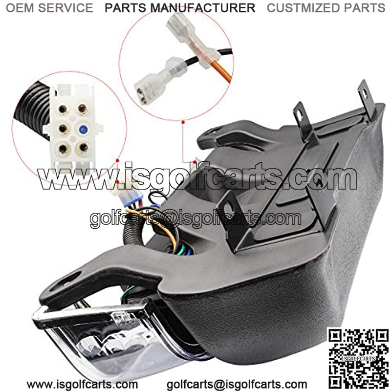 The benefits of our headlights:(1)LED light use less energy and save more battery life so you can drive much farther on a single charge.(2)Significantly brighter so that you can see better at night.(3)Longer-lasting,may be used for up to 30,000 hours.(4) More durable.(5)Don??t need any warming-up time so they perform better in the cold. Fit Club Car Precedent Golf Cart Electric 2004 and Up . It works on a 12V power supply. Replace Your Precedent Light with a “LED” Replacement Headlight. Replacement front head light with BUMPER and short harness and Heat Sink.Tips: The headlight is the same as the original one, only for lighting. Includes: Front Head Light Assembly with Bumper, LED Light, Short harness.(Note:doesn’t include the harness of the golf cart itself; only the harness of the headlights) Replaces Club Car OEM: 102524801,1025248-01. Easy Installation.