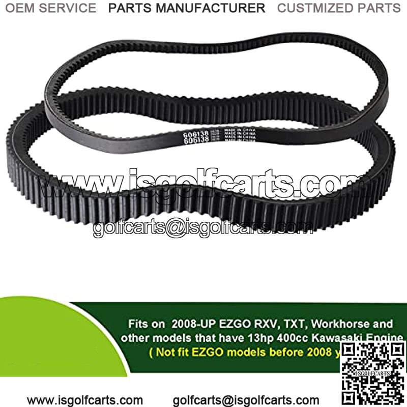 Clutch Drive & Starter Generator Belt Kit fits for 2008-up EZGO RXV/TXT/Workhorse and other golf cart models with 13hp 400cc Kawasaki engine and clutchs.