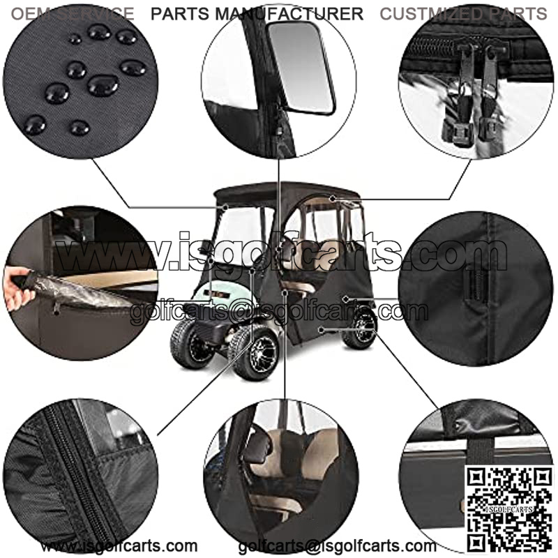 Side doors and front rear windows can be zippered both inside and outside, roll up and easily fixed by magic tape, keep the golf cart ventilated and breathable
