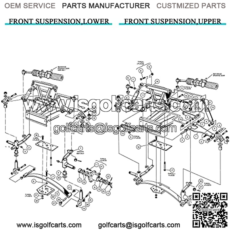 Repair Kits For A Whole Golf Cart: Complete repair kit for club car ds front end suspenstion (upper+lower), for a whole golf cart.
