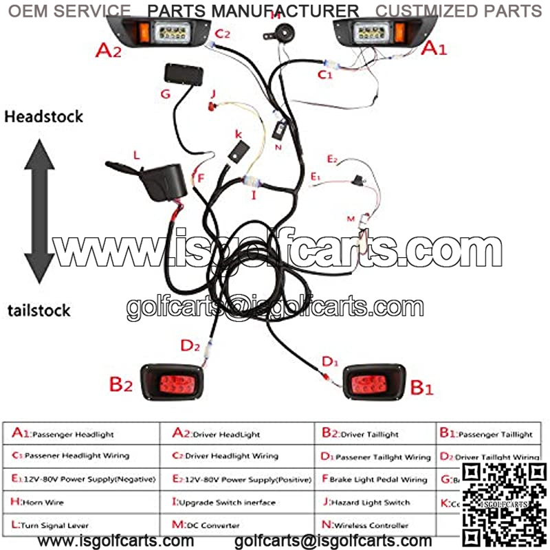 Application: The golf cart LED light kit, compatible with EZGO TXT gas and electric vehicles Add more driving safety: Updated headlight with low-high beam and RGB Daytime Running lamp (Controlled by Phone), provide you a great vision in night, fog or rainy day Make golf cart street legal: Come with golf cart turn signal kit, added brake light, hazard flasher, horn, front rear turn signal function to a factory golf cart 12V-80V input voltage required: Input 16V-80V, connect to battery directly( No voltage reducer needed). Input 12V-14V, disconnect the built-in DC converter on harness to avoid voltage shortage Easy to install, It will take about 2-3 hours to finish.User manual included