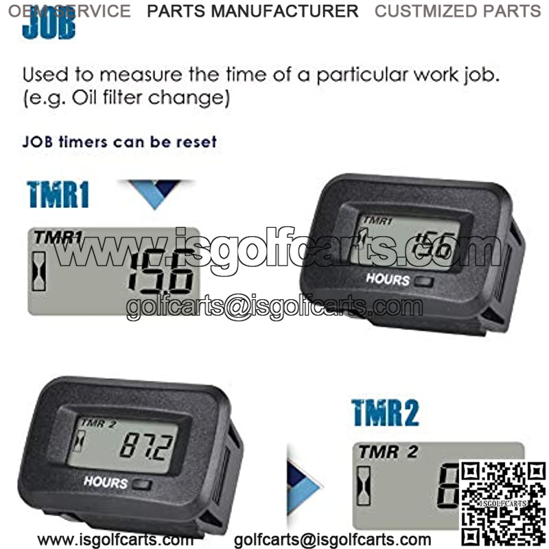 JOB TIMER—-JOB timer used to measure the time of a particular work job, Like change oil, Air filter Replacement etc…;Includes 2 resettable JOB timers:TMR1 & TMR2 ;Read up to 999,999 hours ; 0.1 hour accuracy;
