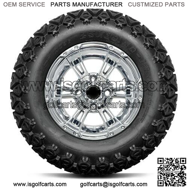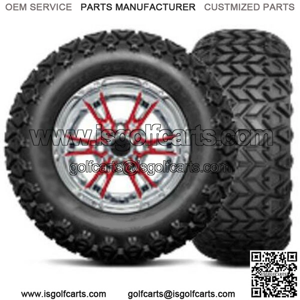 DoubleTake 23×10.5-12″ Golf Cart Trail Tire & Wheel Combo (23″ Tall Premounted) This tire/wheel combo is made to fit any lifted golf cart (Club Car, EZGO, Yamaha, etc.) 6-inch lift or larger required. Includes 23″ Trail (All-Terrain) Tire that comes pre-mounted on 12″ Wheel of your choice. Wheel Available in Chrome, Satin Black, or Machined Silver + Black. 2+5 Offset -47. You can add on lug nuts (pack of 16) if you need to replace your lug nuts (choose either Standard for Club Car/EZGO or Metric for Yamaha) You can also choose to add the Wicked Color Inserts to your order (comes as set of 4). This insert fits into any of the 57 Series wheel options, and adds a pop of color to your cart for even more customization! Choose from a variety of color options (see image below for options)