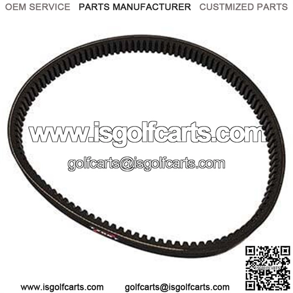 This aftermarket golf cart drive belt installs around the primary and secondary clutches on your EZGO. You can take the driven clutch off with ease and install the belt that way. Most people, however, just stretch it as far as they can over the clutches and then turn one of them until it pops on. Either way is acceptable; just make sure that you get it replaced at the first sign of wear. One-eighth of an inch below the OEM measurement is too much, so call today and get one coming.