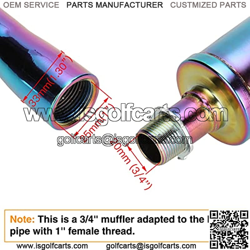 ??Note??Please make sure the exhaust pipe thread size is correct to this muffler before purchasing.Due to the irregular distribution of the colors painted on its surface, different mufflers may have a slight difference in color.Pay attention to the direction of the snap ring when installing.You can contact us by email if you have any questions.