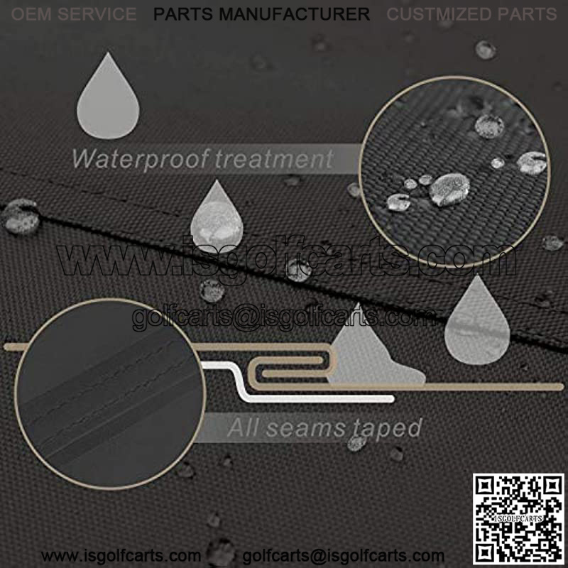 Durable superior 600D polyester with waterproof coating construction, high-level double stitching, waterproof seam sealing tape, protects your golf cart against rain, UV, sand, snow, dust, fog, scratch and other harsh weather situations.