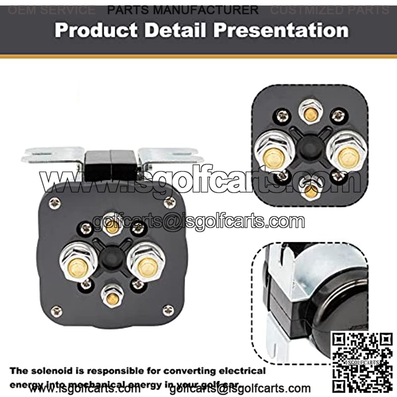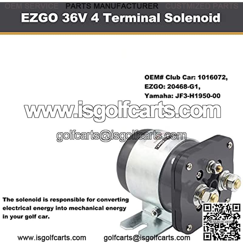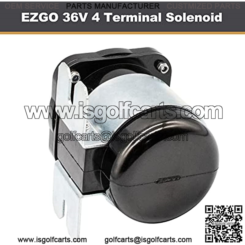 4 terminal Heavy-duty 36V solenoid:Provides the electrical energy necessary to activate the vehicle’s ignition system by being the conduit between the golf car’s battery and starter motor.