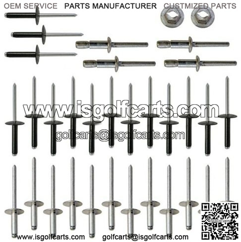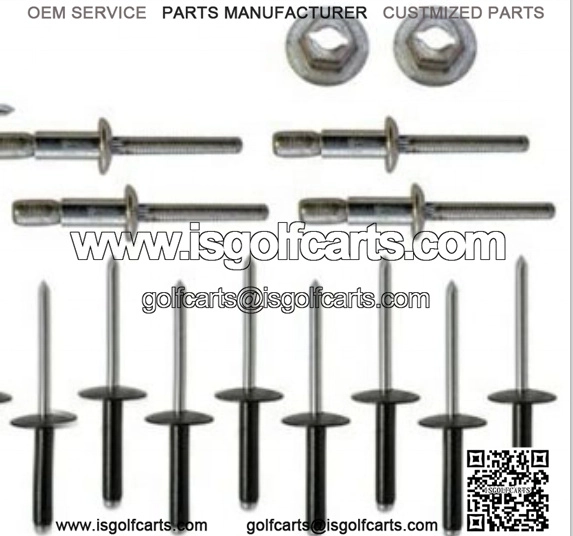This Ezgo Golf Cart Complete Body Rivet Kit Includes all rivets needed to re-body/mount the TXT body on your cart. Gas or Electric 1994 and Up
