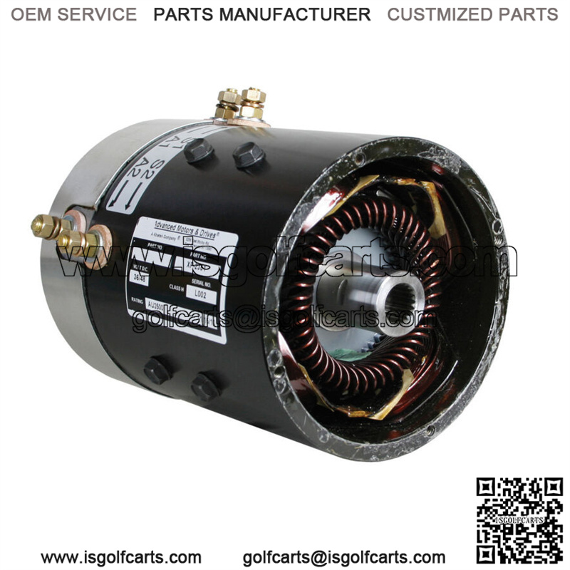 AMD high speed, series motor. 36-volt – 4-hp@4400 rpm with 19 spline coupler. For Columbia and Melex with Dana axle, E-Z-GO 1988-up series cars, Yamaha G14, G16. Speeds up to 20 mph with stock controller. Also works on 48-volt. Not for use on PDS or DCS cars.