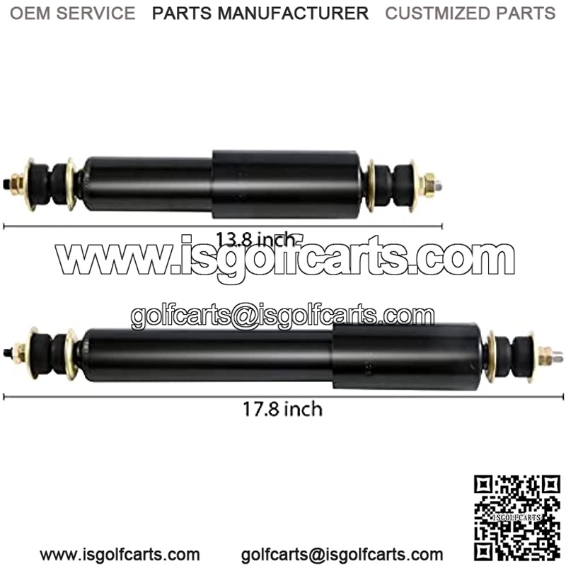 Works on EZGO TXT gas or electric golf cart models 1994-up.Will work for both front and rear. You will need to order 4 shock absorber (2 pair) for to do your entire golf cart. This listing is for a pair (2 shock absorber).Replaces OEM# 76418-01, 76418G01,bushings are included.Replaces # 5006.Heavy duty constructions, exceed OEM specifications.