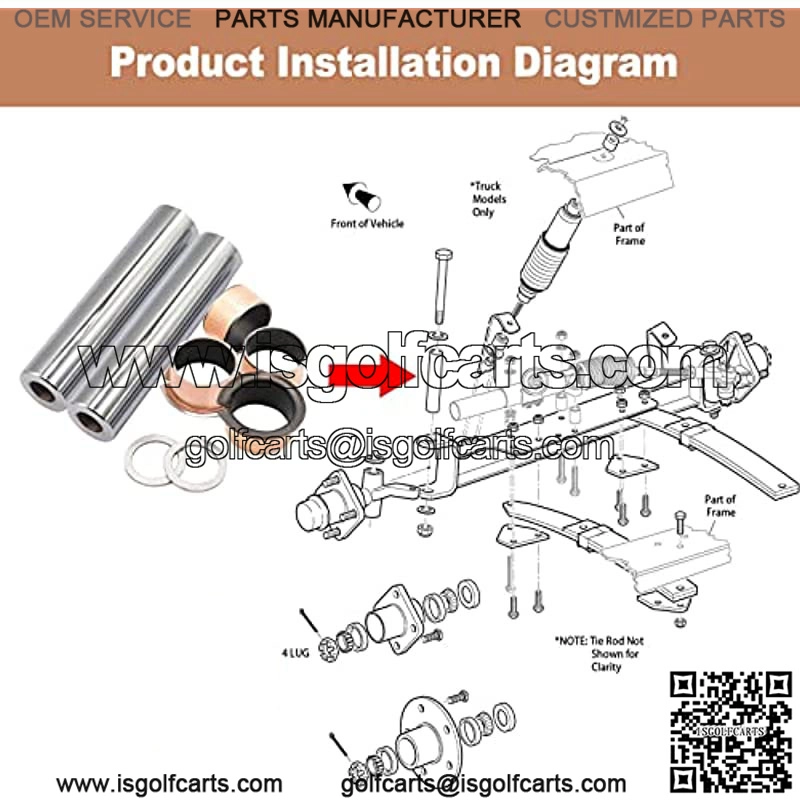 Fits the Following Cart(s): 2001-current E-Z-GO Gas & Electric TXT, EZGO 2010-UP RXV,4/6-Passenger Shuttle, ST 400, Woods Boundary MAV 400. Used on ST Sport, ST Sport II, ST Sport 2+2, ST Express, Clays Car, Workhorse-MPT (Multi-Purpose Truck) 800/1000/1200. Used on Refresher, Refresher 1200, Cushman 2/4/6-Passenger Bellhop, Cushman 280 and Cushman Commander 2200 Vehicles. Spindle Bushing With Flange(included 2Pcs) ,OEM#70648-G01/632925 Spindle Bushing Without Flange(included 2Pcs), OEM#70749G01/632926 Spindle King Pins(included 2Pcs)&Gaskets(included 2Pcs),OEM#70745G01/614034Aboutis a Professional Golf Cart Parts&Accessories Brand for over 10 years.We have accumulated a strong supply chain resources, as well as a large number of products in stock, with an absolute advantage; Welcome to purchase the High Quality&No After-Sell Worry Accessories.We are always committed to providing high quality products for global customers through standardized production processes, strict quality