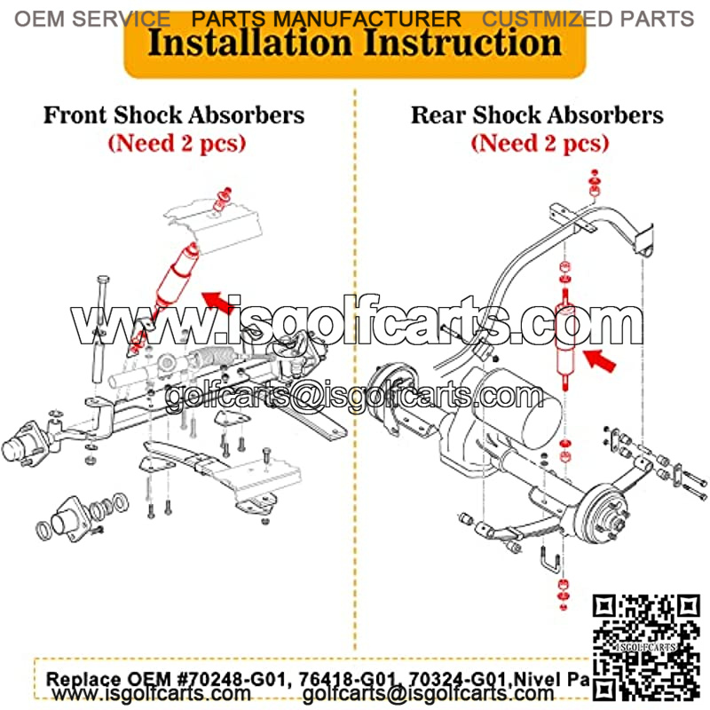??Replaces OEM Part Number??ezgo shocks great replacement for OEM shocks, replace OEM #70248-G01, 76418-G01, 70324-G01,Nivel Part #5006.