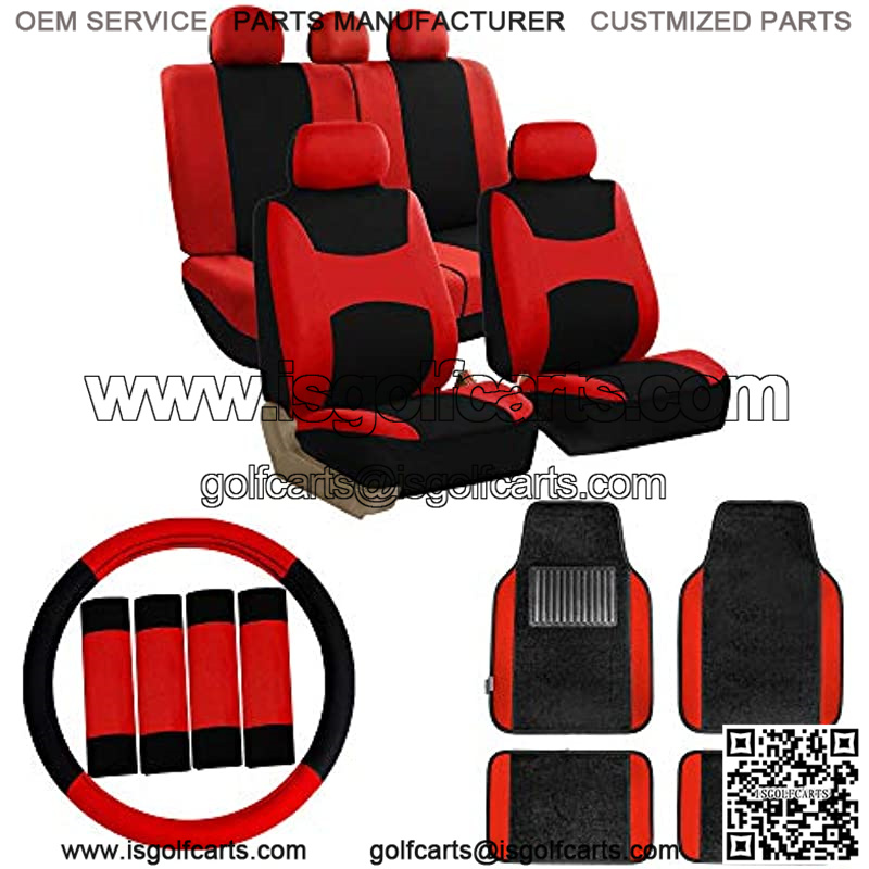FH Group Car Seat Covers Combo Full Set with Carpet Floor mats Steering Wheel Cover and Seat Belt Pads- Universal Fit for Cars Trucks and SUVs (Red)