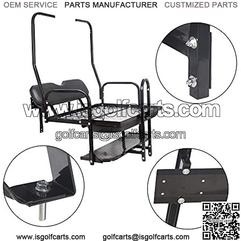 -FITMENT: Compatible with 1982-2000.5 Club Car DS Golf Cart. -FEATURE: 100% Brand new and high quality. Marine-grade vinyl pads are comfortable, durable, and UV-resistant; special bending pipe manufacturing processes are used to manufacture the frame while maintaining strength; protective plaques are installed on the edge of the steel plate for passenger protection. -HEAVY DUTY: The heavy-duty steel plate plating bed has an industrial-grade polishing treatment. Black industrial powder coating, suitable for all seat frames. We only use new non-renewable powder. (Recycled powder is cheaper, but it will become lighter after a year and then fade.) The cargo bed has a load capacity of 400 pounds. -ABOUT INSTALLATION: No cutting or drilling required or other modifications. All hardware included. We are improving our instructions, professional installation is highly recommended. If you need E instructions, Please feel free to contact us. We sincerely regret the inconvenience which this incident may cause. Made to strict quality control standards. Provide technical support at any time. If you do not receive our response more than one working day, please check your spam or Amazon account.