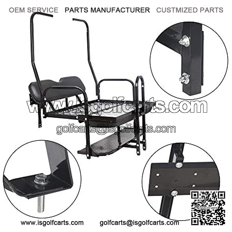 Flip Folding Rear Back Flip Seat Kit Compatible with 1982-2000.5 Club Car DS Golf Cart W/Free Grab Bar & Roof Support