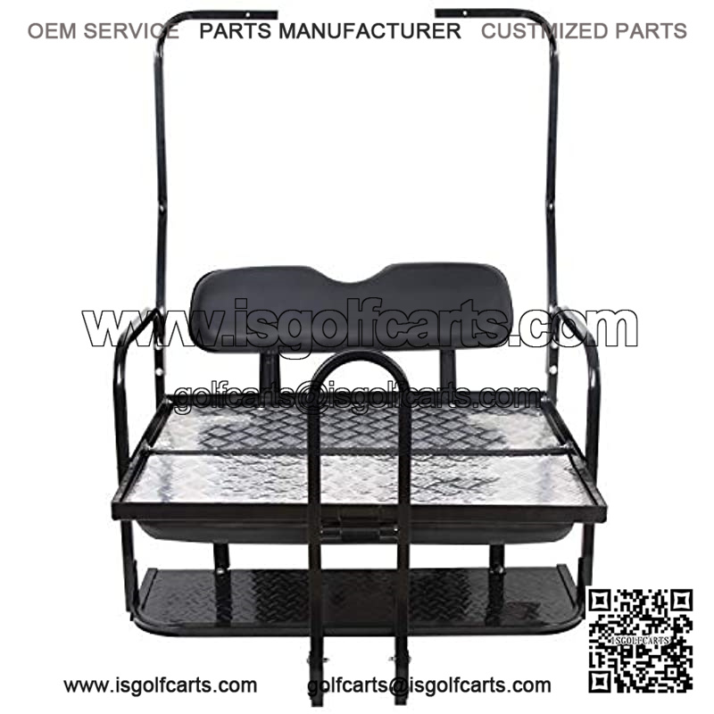 -FITMENT: Compatible with 1982-2000.5 Club Car DS Golf Cart.-FEATURE: 100% Brand new and high quality. Marine-grade vinyl pads are comfortable, durable, and UV-resistant; special bending pipe manufacturing processes are used to manufacture the frame while maintaining strength; protective plaques are installed on the edge of the steel plate for passenger protection.-HEAVY DUTY: The heavy-duty steel plate plating bed has an industrial-grade polishing treatment. Black industrial powder coating, suitable for all seat frames. We only use new non-renewable powder. (Recycled powder is cheaper, but it will become lighter after a year and then fade.) The cargo bed has a load capacity of 400 pounds.-ABOUT INSTALLATION: No cutting or drilling required or other modifications. All hardware included. We are improving our instructions, professional installation is highly recommended. If you need E instructions, Please feel free to contact us. We sincerely regret the inconvenience which this incident may cause.- Made to strict quality control standards. Provide technical support at any time. If you do not receive our response more than one working day, please check your spam or Amazon account.