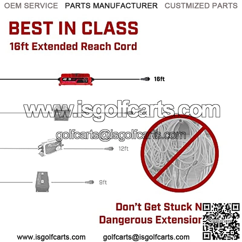 15Amp Rapid Charger ?C Charges 48 volt Yamaha G29 Drive & Drive 2 golf carts. Plug and forget 3-stage smart charging technology Extended 16Ft Power Cables ?C 16ft of reach leaves plenty of room to avoid the struggle of parking right next to an outlet or dangerously adding extension cords Portable & Lightweight Design ?C It doesn??t matter whether you are home in the garage, parked in front of the clubhouse or at the cart shed; our lightweight charger can easily be taken with you. We understand everyone??s needs are different; each charger can be wall mounted. Water & Dust Resistant – ?C With an IP67 weather resistance rating, you don??t have to worry about your charger being damage by water, dust or vibration. Excellent Customer Support ?CWe want to make sure that you are 100% satisfied with your FORM golf cart charger. Other golf cart chargers provide EXTREMELY limited support on Amazon ?C but not us! Our ultra-responsive USA based customer service is here to help.